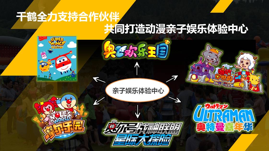 近几年,千鹤文化与国内外知名动画品牌“变形金刚”,“太空堡垒”,“小企鹅PORORO”,“麦兜故事”,“喜羊羊和灰太狼”,“摩尔庄园”,“赛尔号”,“铠甲勇士”,“巴拉拉小魔仙”,“火力少年王”,“电击小子”、”开心超人”、“奥特曼”等合作,在近百个城市制作策划运营了大型儿童动漫主题乐园“羊羊得意嘉年华”、“奥飞欢乐王国” 、“奥特曼嘉年华”、“赛尔号-战神联盟星际大探险”、“摩尔庄园嘉年华”、“奥特曼五十周年巡展”、“龙骑侠欢乐王国”、“喜羊羊-嘻哈闯世界”等项目数百场,既满足了合作商家的人流量聚集导入的需求,又填补了国内儿童线下亲子娱乐体验的空白。
