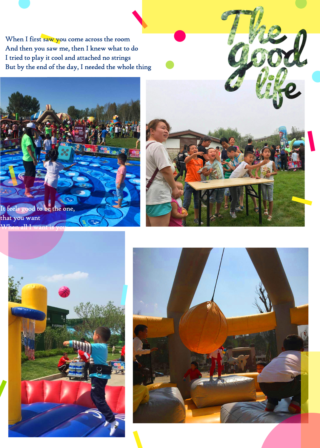 孩子们奔跑、跳跃、翻滚,体验运动与娱乐带来的快乐,爸爸妈妈守护在一旁,享受这难得悠闲的亲子时光。